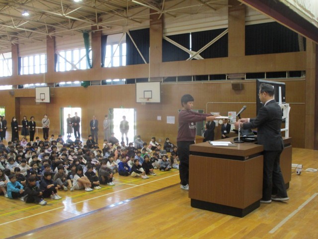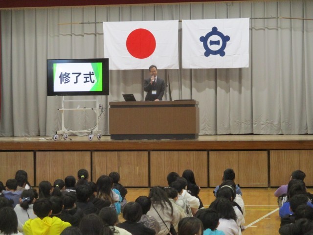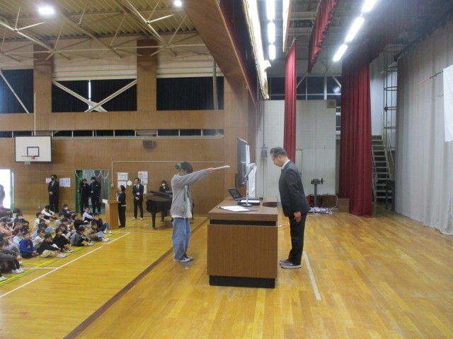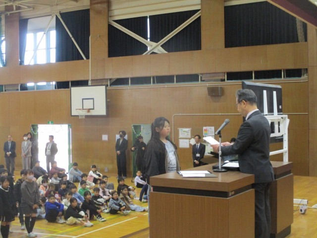 その後、校長先生からは、どの学年の子たちも勉強や運動、運動会やなわとびフェスティバルの学校行事で頑張ったこと等のお話がありました。また、春休みの生活で気を付けてほしいことについてのお話もありました。
