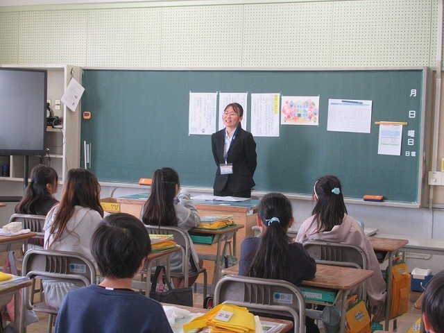 新しい学級になり、新しい担任の先生のお話を聞きます。