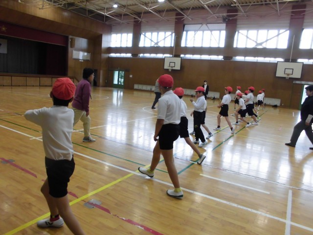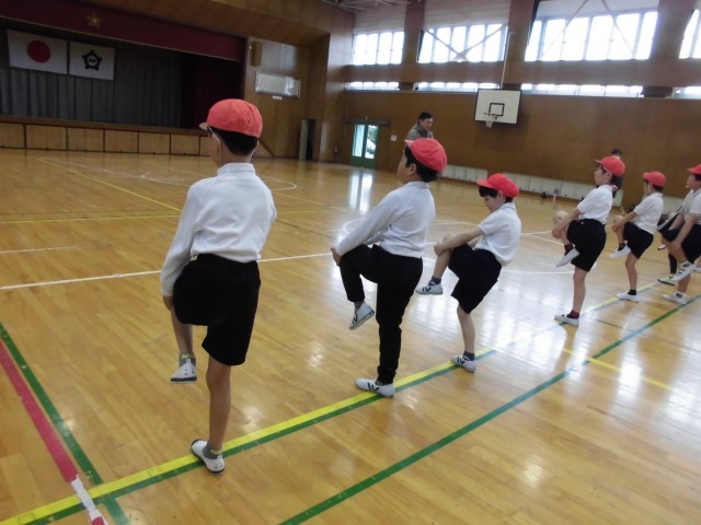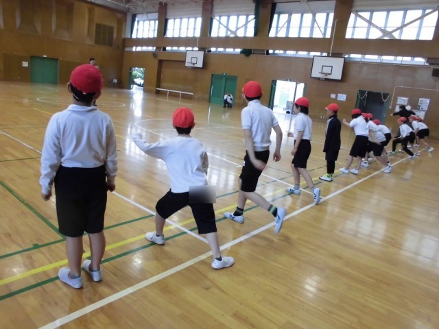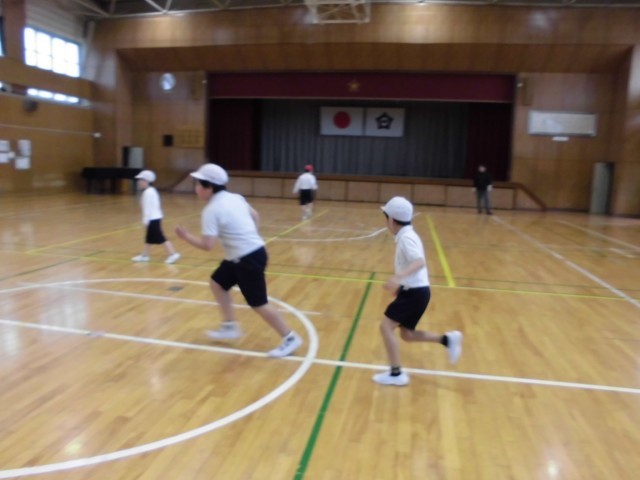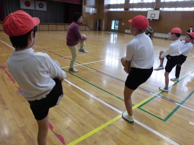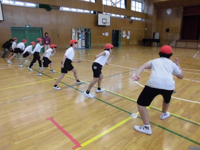 4時間面の体育では、準備運動やストレッチの後、先生の合図でダッシュをしました。