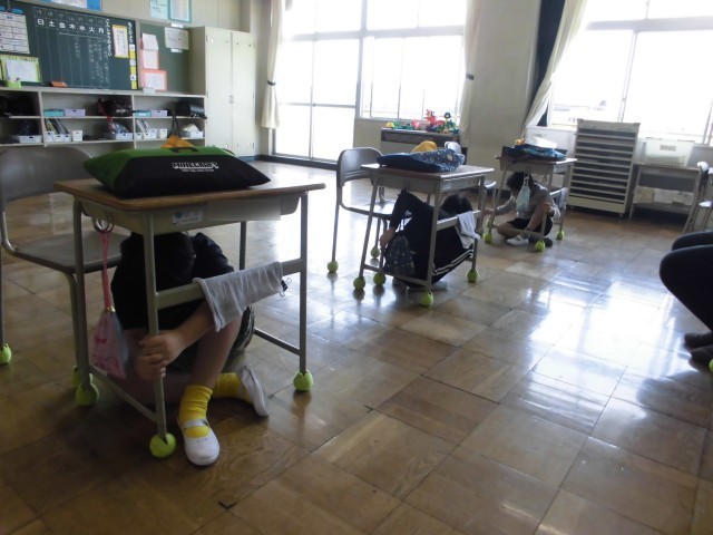 机の下に素早くもぐったり、外に速やかに避難したりすることができました。