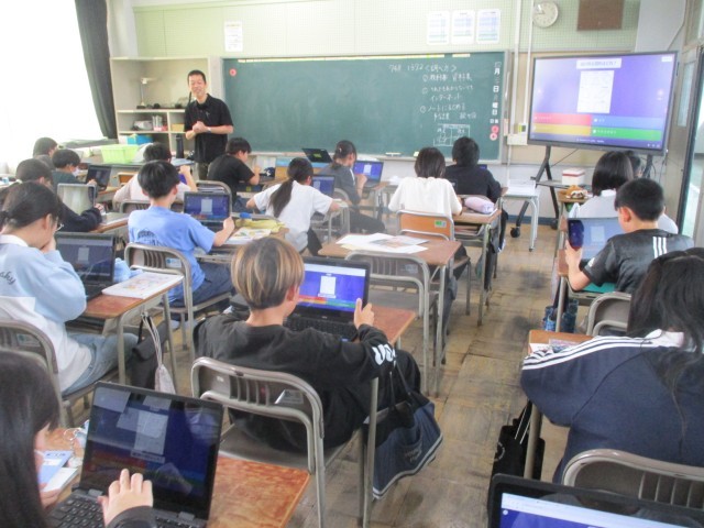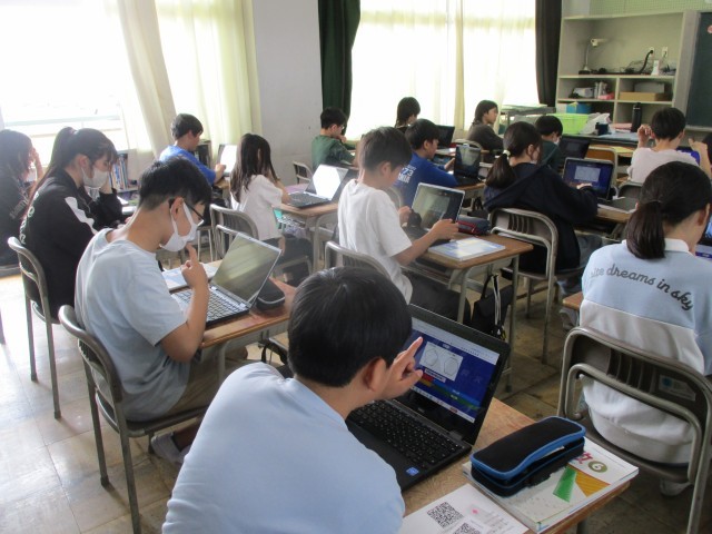 前時の復習をタブレットを活用して行います。