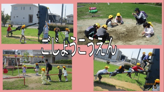 五城公園では、かもつ列車や手つなぎおにをして遊びました。