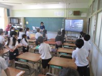 国語の授業では「いちねんせいのうた」という教材を扱いました。夏休み明けでも、1年生のみんなは、元気な声で音読をすることができます。この教材では初めて漢字を勉強します。腕を伸ばし、力強く漢字の「一」を表しました。