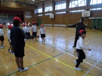 なかよし学級の学習の様子です。図工で段ボール工作を作っている子、習字を学習している子の様子です。