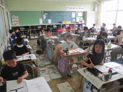 今日は書写の授業で「二」と「土」を練習しました。横画と縦画の筆運び、「とめ」の筆使いを意識しながら取り組みました。