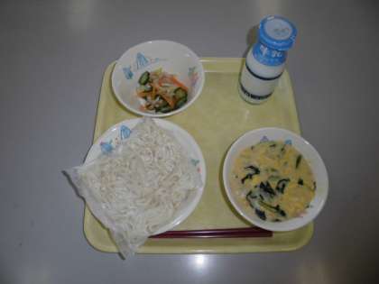 ソフトめん・うきうきカルボナーラ・牛乳・切り干し大根のサラダ