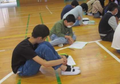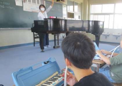 なかよし学級の子どもたちは通常学級にも一部教科で参加しています。音楽、体育、修学旅行の説明の様子です。