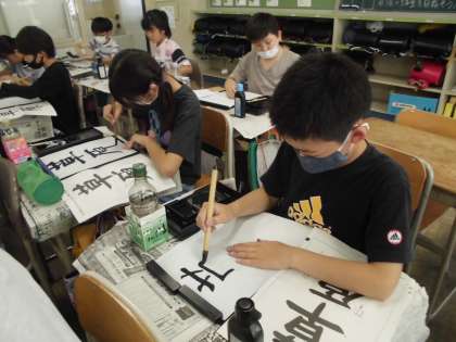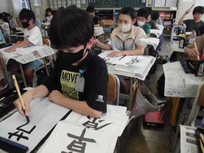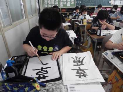 今週から急に暑くなってきました。体調管理にも気をつけて生活してほしいです。さて、そんな暑さの中でも、集中して習字の練習です。始筆・送筆・終筆を意識して、一画一画丁寧に書くことができました。