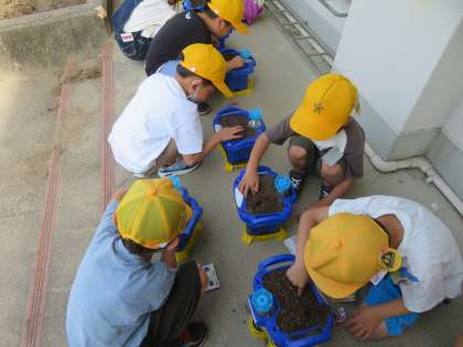 あさがおの種をまきました。自分の鉢に「これでいいかな。」と確かめながら、丁寧に種をまいていました。きれいな花がさくといいね!