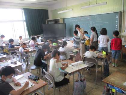 1組では、算数でたし算の筆算の学習をしました。一人一人が真剣に問題に向き合い、学習に取り組んでいました。2組では、学活でグループの仲間とすごろくをしました。いろいろなミッションをみんなで乗り切りながら楽しくゴールしました。