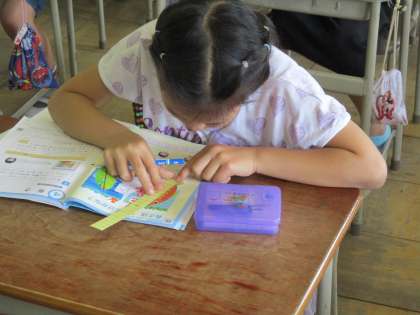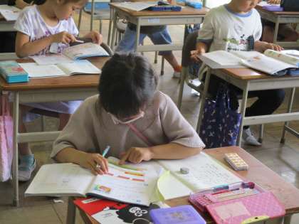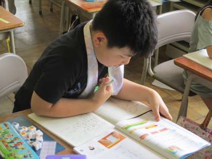 算数の授業では「長さ」の学習をしています。今日は紙のものさしを使って、長さを図り、「センチメートル」という単位を覚えました。