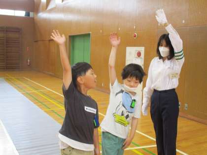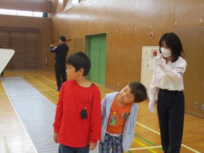 警察の方、指導員の方が見えられ、交通安全教室を行いました。低学年は横断歩道の渡り方を確認しました。