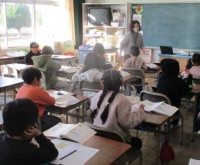 文章の中から、獣医の仕事の工夫やその理由を見つけ、伝え合う活動をしています。