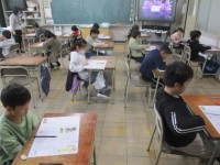 2年生は2学期のまとめのテストを行っていました。座席を北向きと南向きに分けてのテ...