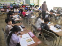 なかよし学級の2時間目の様子です。交流学級でのお楽しみ会では、ビンゴに楽しく参加しました。また、明日の終業式までに教室内をきれいにしようと、整理整頓をする姿もありました。