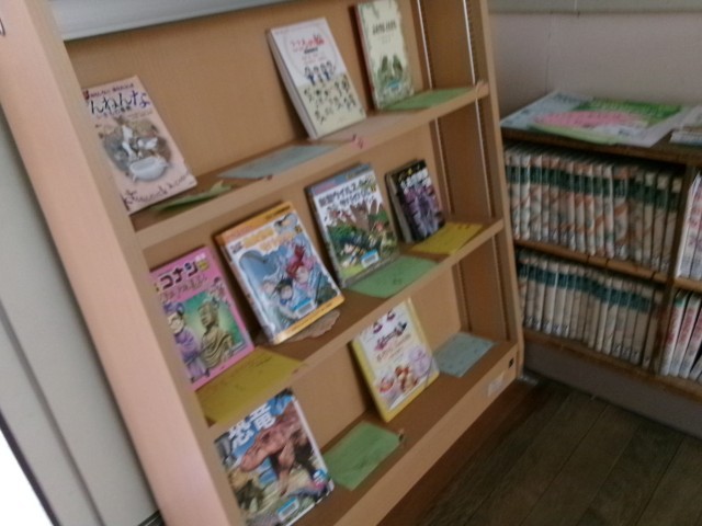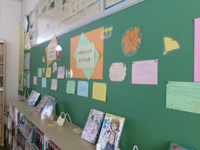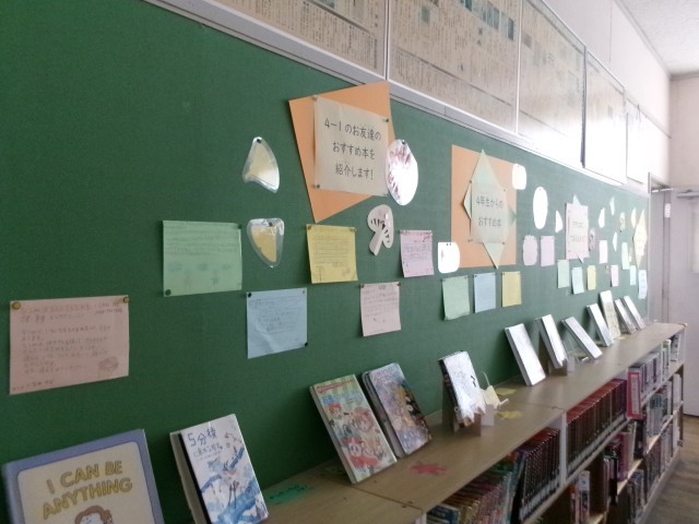 国語の時間にポップ作りをしました。おすすめの本とポップを図書館に掲示してもらいました。自分の作ったポップを図書館に見に行く様子が見られました。