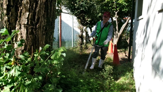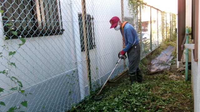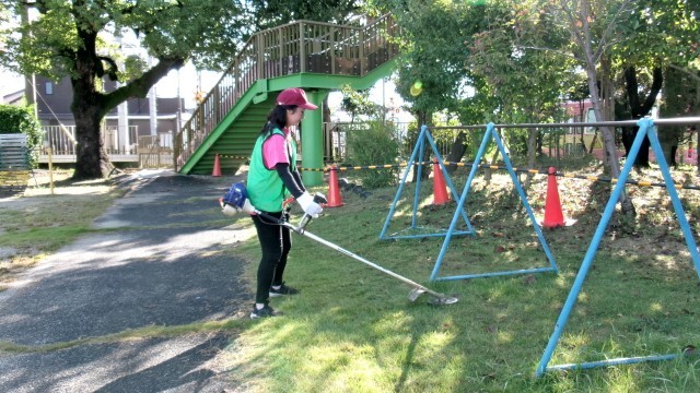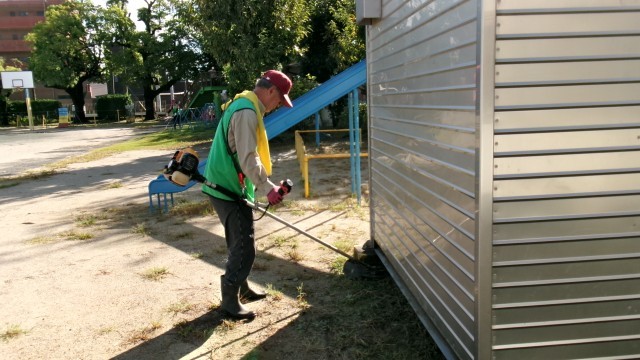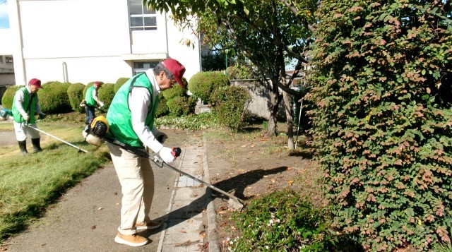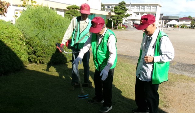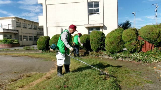 地域の学校のために、そこで学ぶ子どもたちのために、朝から草刈り機で作業してくださいました。