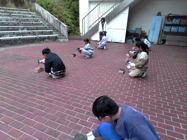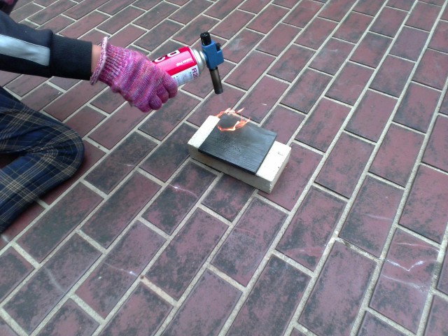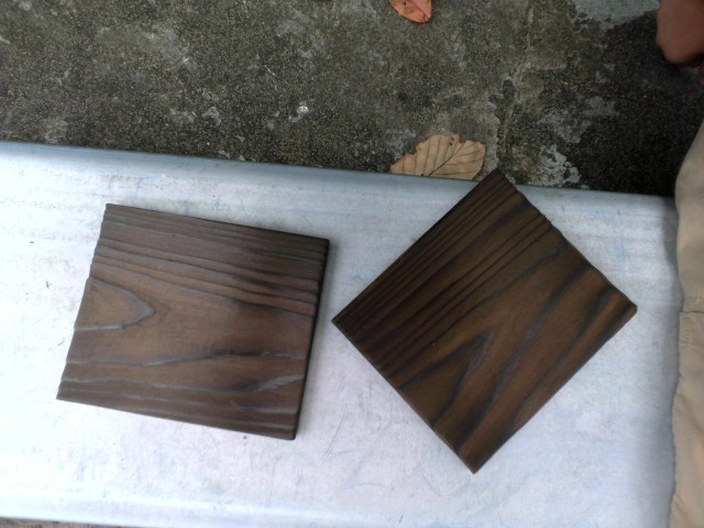 ガスバーナーを使って杉を焼きました。