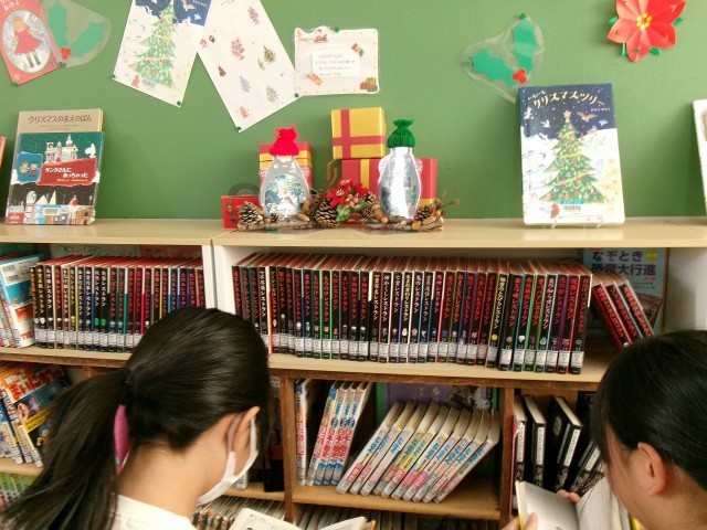 12.12 昼放課の図書室 公開日 2025/12/12 更新日 2025/12/12 黒田っ子日記 今日は、寒い日になりました。放課は、冬休みに読む本を借りに来る児童もいました。クリスマスコーナーもあります。読み聞かせボランティアの方が、すてきなクリスマスのプレゼントも作ってくださいました。ありがとうございました。