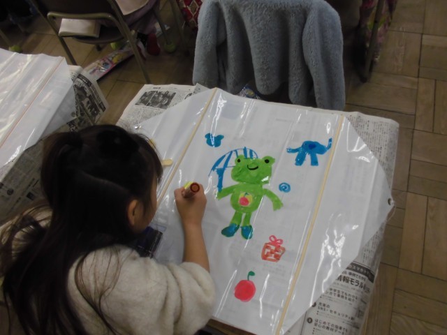 生活科の「ふゆをたのしもう」で、凧作りをしています。凧にカラーペンで好きな絵を描きました。来週は凧揚げをして、もっと楽しもうと思います。来週も元気よく学校に来てくれると嬉しいです。