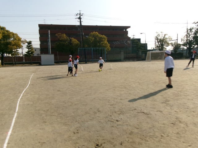 1.16 ミニサッカーゲーム(4年生) 公開日 2026/01/19 更新日 2026/01/16 4年生 体育で、ミニサッカーゲームをしました。5対5でコーンの間をゴールにして対戦しました。パスをつないで頑張ってシュートしていました。