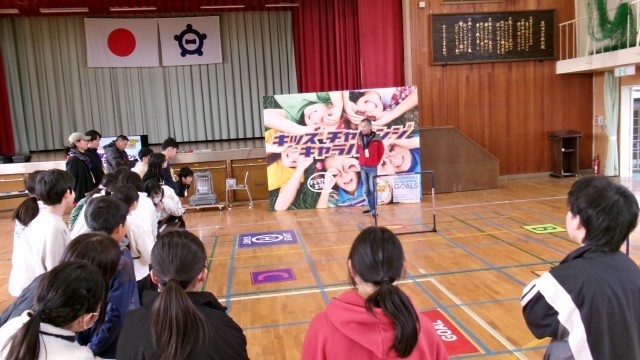 キッズ・チャレンジ・キャラバンが黒田小体育館に来てくれました。