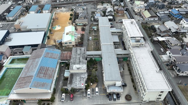 また、国家資格をもつ講師のみなさんの操縦で、黒田小学校の上空からドローンで撮影をしていただきました。