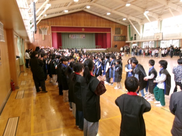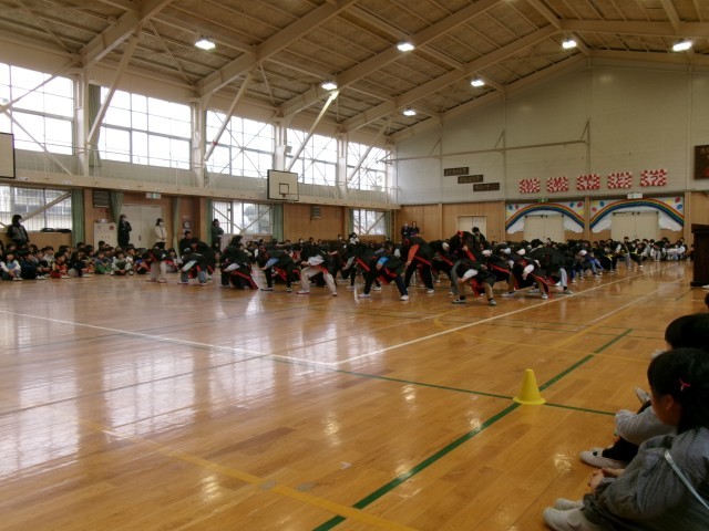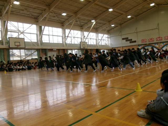 これまでの練習の成果を生かして、全力の呼びかけと、全力のソーラン節で、6年生の卒業を応援しました。
