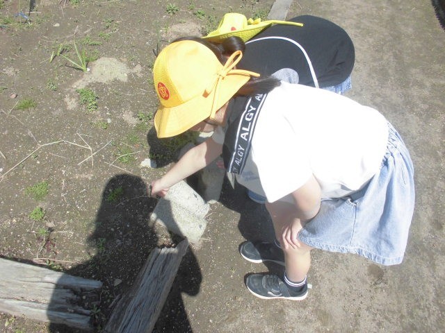 4.16 春の生き物見つけ(4年生) 公開日 2026/04/17 更新日 2026/04/16 4年生 理科で春の生き物を見つけました。どこにいそうかを考え、石の裏を見てみたり、草の間を見てみたり、工夫して観察することができました。