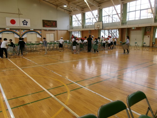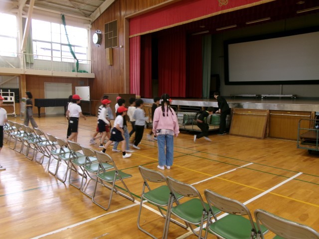 4.23 PTA総会 会場準備(5年生) 公開日 2026/04/24 更新日 2026/04/23 5年生 PTA総会の会場準備を行いました。 限られた時間の中で、400脚以上のイス並べや、机出しなどを、手早く安全に行うことができました。 進んで活動できる子がたくさんいて、すばらしかったです。 今後も、行事のときには準備や片付けを行う機会があります。 今回のように、前向きに取り組めるといいですね。