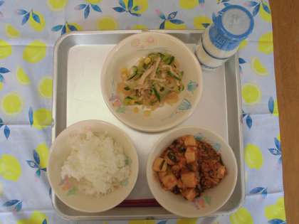 ごはん 牛乳 マーボードウフ バンサンスー でした。