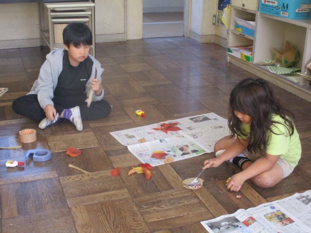 落ち葉や枯れ枝を使って。