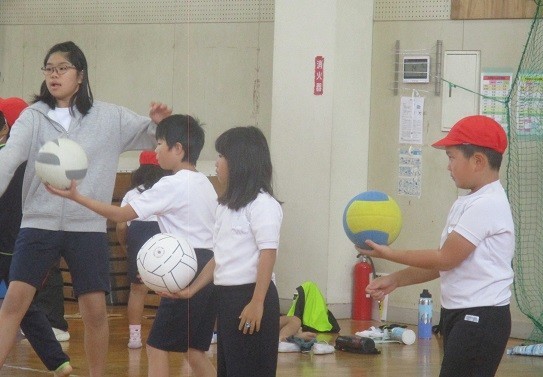 バレーボールのパスに挑戦!
