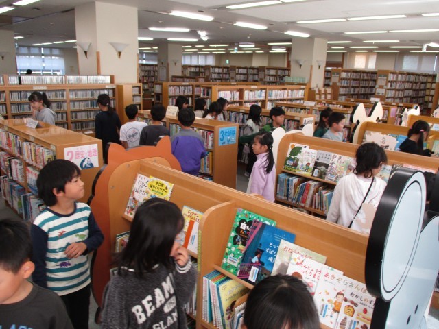 1階の図書館、2階のレファレンス室、3階の屋上庭園や画廊を見学しました。