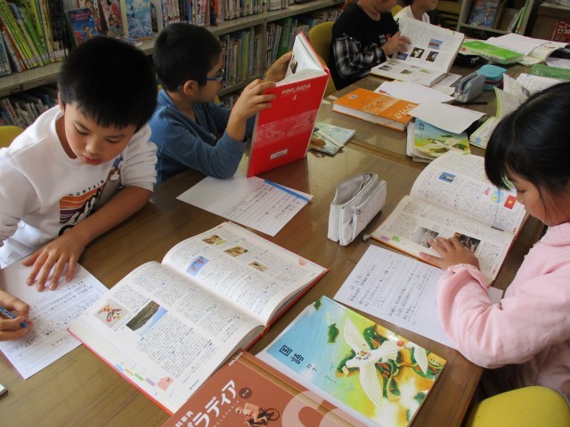 国語の授業で、司書の先生に百科事典の使い方について教えていただきました。それぞれの伝統工芸品を調べ、定義や出典を書くことができました。