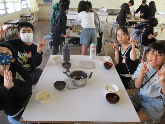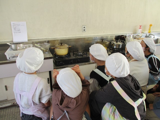 炊飯器を使わないご飯に出汁からとって作る味噌汁。どちらも初めての経験の子が多く、楽しみながら調理をする姿がありました。