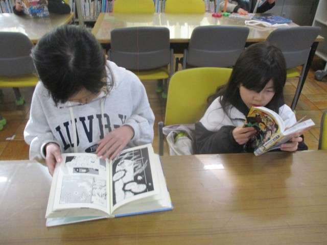 2時間目の図書館で。