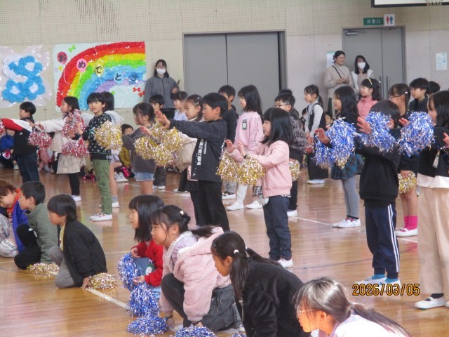 また、6年生送る会では、6年生へ感謝の気持ちを込めて、言葉とダンスのプレゼントを送りました。