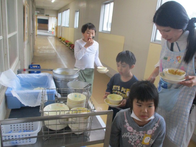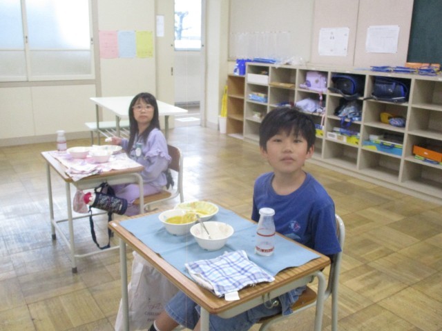 中間放課と給食の時間。
