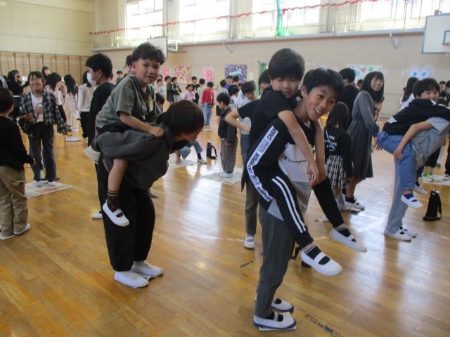 代表委員会主催のペア結成会がありました。はじめてペアになる子と、自己紹介をしたり、簡単なゲームをしたりして楽しみました。