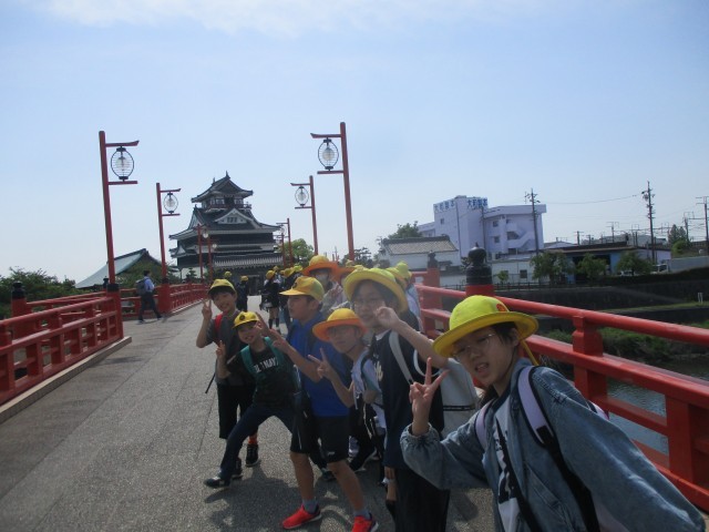6年生の春の校外学習では、清洲城に電車で向かいました。戦国武将や清洲城の歴史を詳しく学び、一生懸命メモをしながら見学することができました。