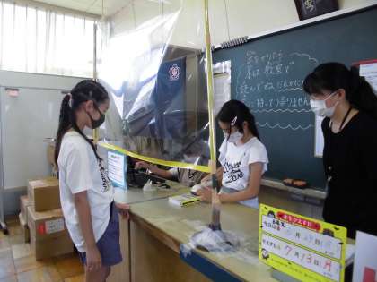 給食委員会では、牛乳のラベルを回収したり翌日のこんだてを黒板に書いたりしました。給食委員会の仕事は主に給食の後にあるのでとても忙しそうでした。それでも来た人みんなに敬語を使い、同じ対応をとっていました。