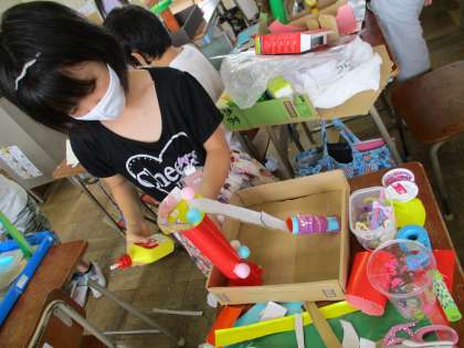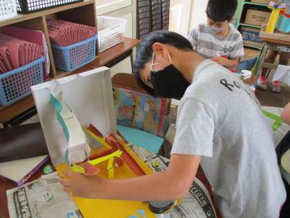 4年生の図工では、コロコロ転がれ!「コロコロガーレ」で作品を作っていきます。お家でも、段ボールや紙等の作品の材料集めにご協力していただき、ありがとうございました。