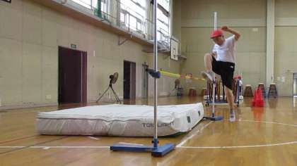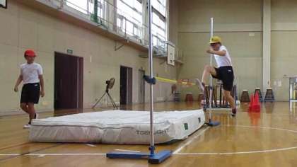 体育の時間に、走り高跳びをしています。初めて走り高跳びに挑戦したときに比べて、跳び方が格段にうまくなっています。動画を見て、自分のフォームの確認をしながら、最高記録を目指していきます。