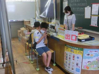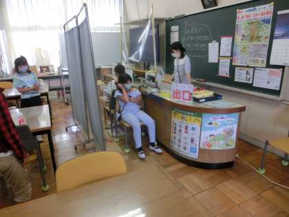 保健の先生に、やり方を聞いた後、消毒をしてから行いました。