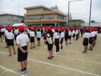 体育の授業では、ボール遊びを行っています。みんなでルールを決め、班対抗で勝負しました。班で相談しながら、どうしたら勝てるかを考えました。