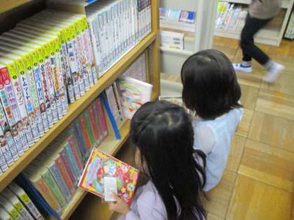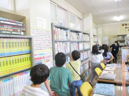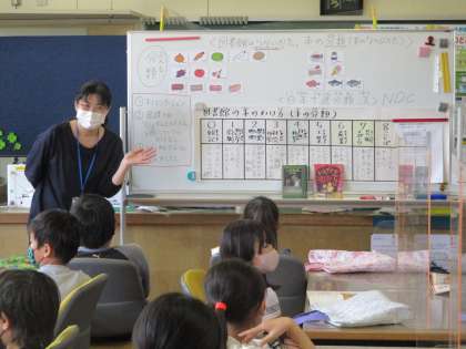 司書の岡田先生に学校の図書館の使い方や本の並び方を教えてもらいました。