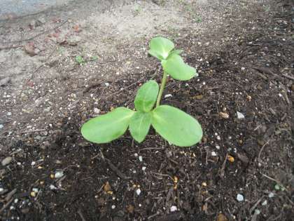 ゴールデンウィーク前に植えたヒマワリやホウセンカが芽を出しました。