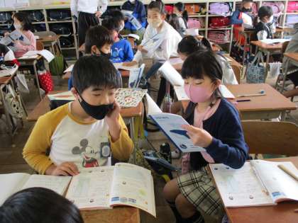 5月11日 4年生 算数の授業 公開日 2021/05/11 更新日 2021/05/11 4年 算数の折れ線グラフの授業です。折れ線グラフを見て気が付いたことや考えたことをペアで話しています。全体の前で発表がしにくい児童も、自分の意見を発表することができて、理解が深まっている様子が見られました。
