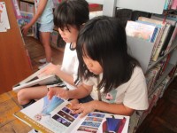 全体練習の前に教室でダンスの練習。図書館での様子。